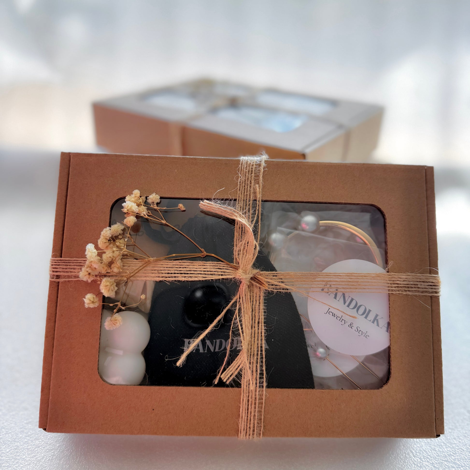 The BANDOLKA Gift Box is a perfect blend of elegance and charm. Each set includes timeless jewelry, a satin scrunchie, a chic bubble candle, and a stylish mini case. Wrapped with dried flowers for a delicate touch, it makes an ideal gift for birthdays, anniversaries, bridesmaids, or simply a treat for yourself.